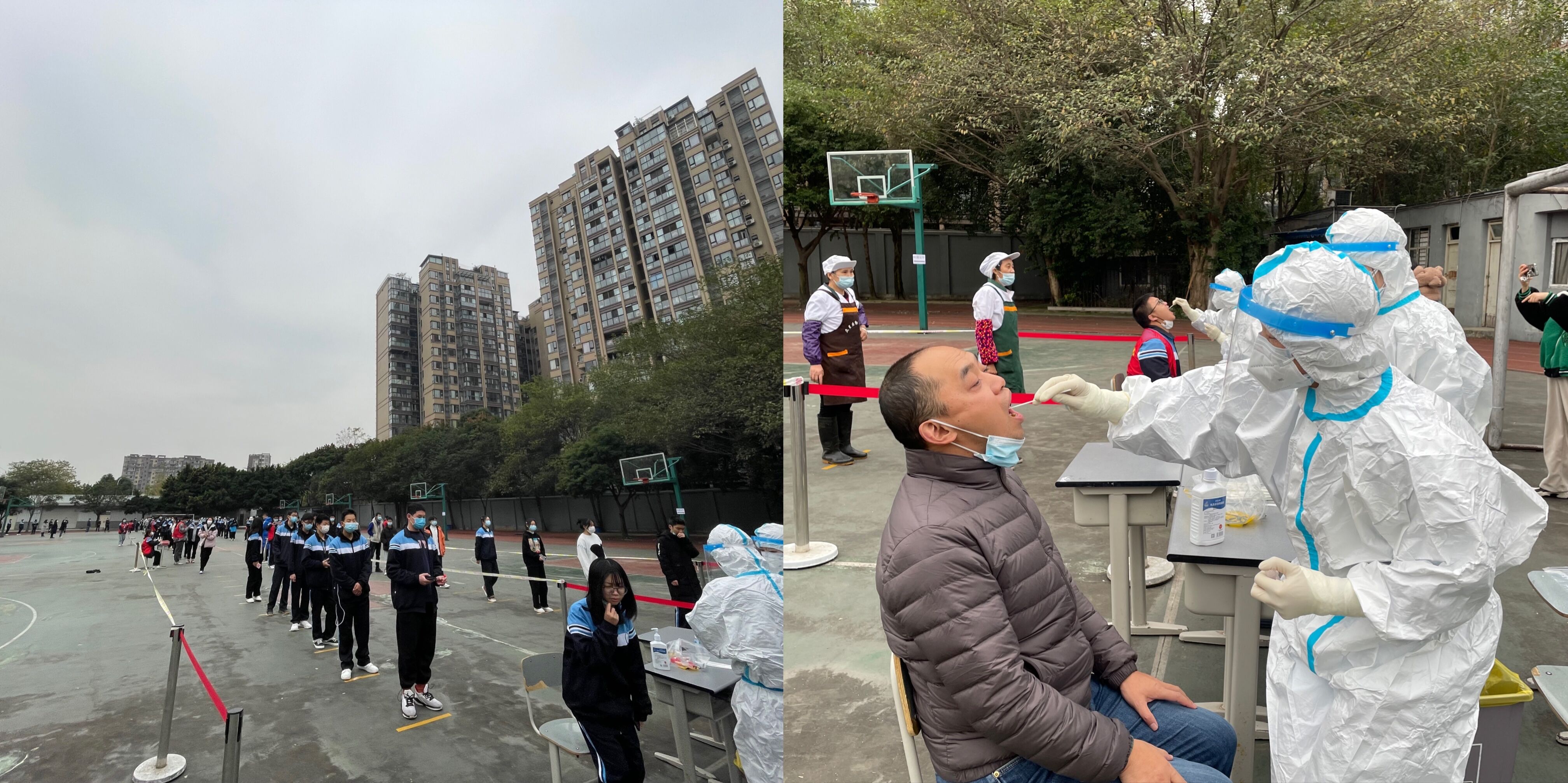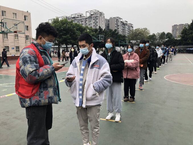 针对当前疫情防控的形势,经红牌楼综合办向属地竹园社区申请,医务人员于2021年11月11日上午进校,为我校师生进行专场核酸检测。为保障学校防控安全和核酸检测工作顺利开展,由综合办组织各部门负责人制定了具体实施方案,将操场设置为核酸检测场所。检测现场组织有序,秩序井然。顺利完成所有在校学生、食堂、安保、宿管人员及部分教职工共计1380人的检测 。